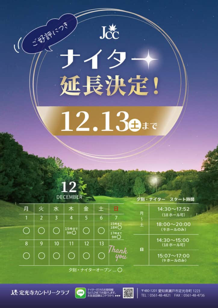ご好評につき、ナイター営業を 12月13日(土)まで延長 いたします。