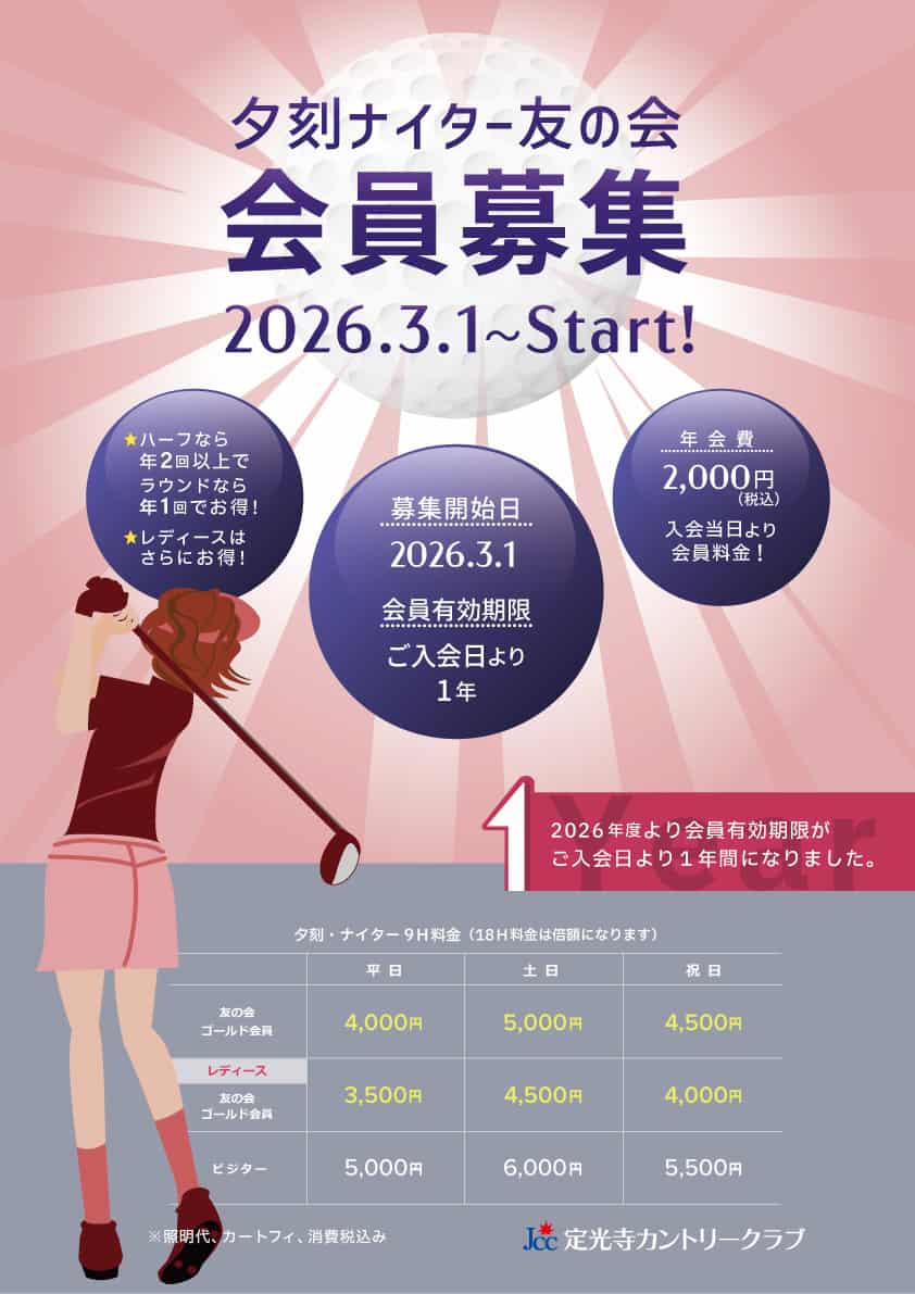 夕刻・ナイターゴルフをもっとお気軽に、もっとお得にお楽しみいただける大変お得な会員制度です。ぜひこの機会にご入会ください。
