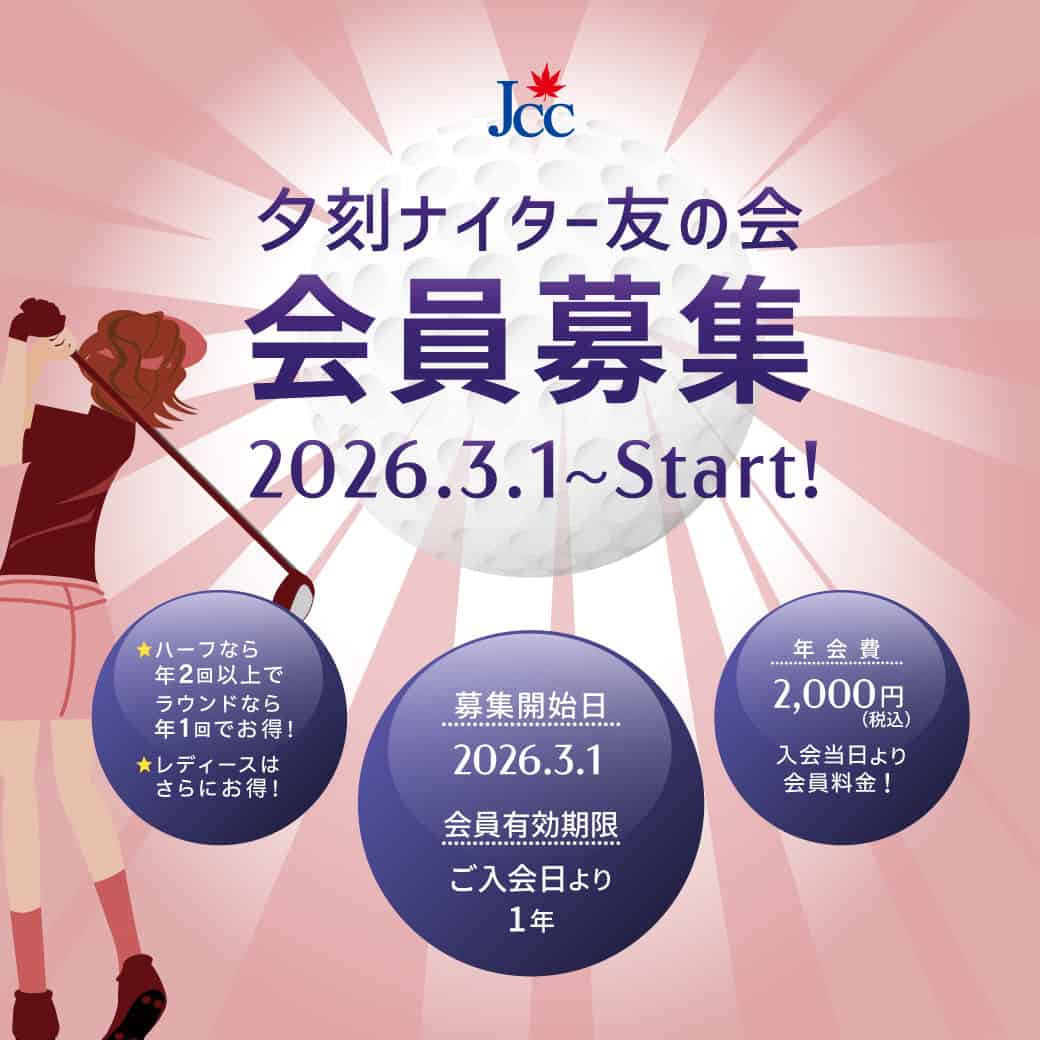 夕刻・ナイターゴルフをもっとお気軽に、もっとお得にお楽しみいただける大変お得な会員制度です。ぜひこの機会にご入会ください。