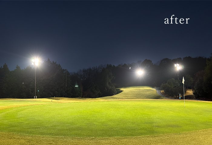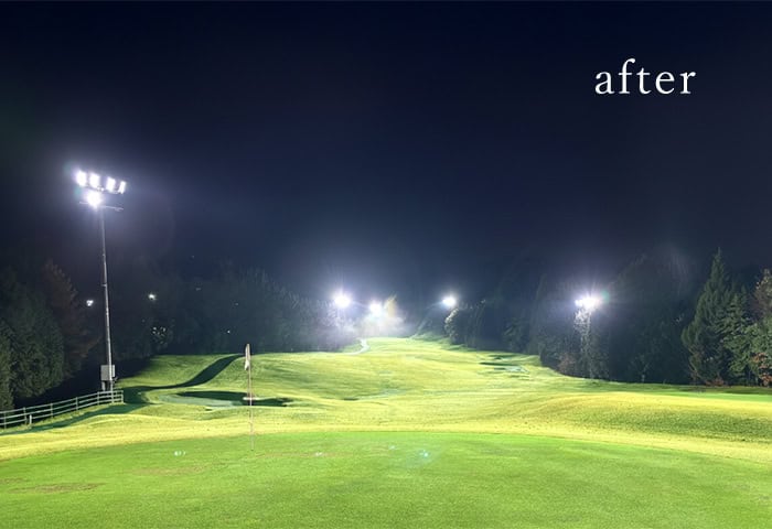 自然光に近い光がコース全体を均一に照らします。パワーアップした定光寺ナイターで、これまで以上に快適なゴルフをお楽しみください♪